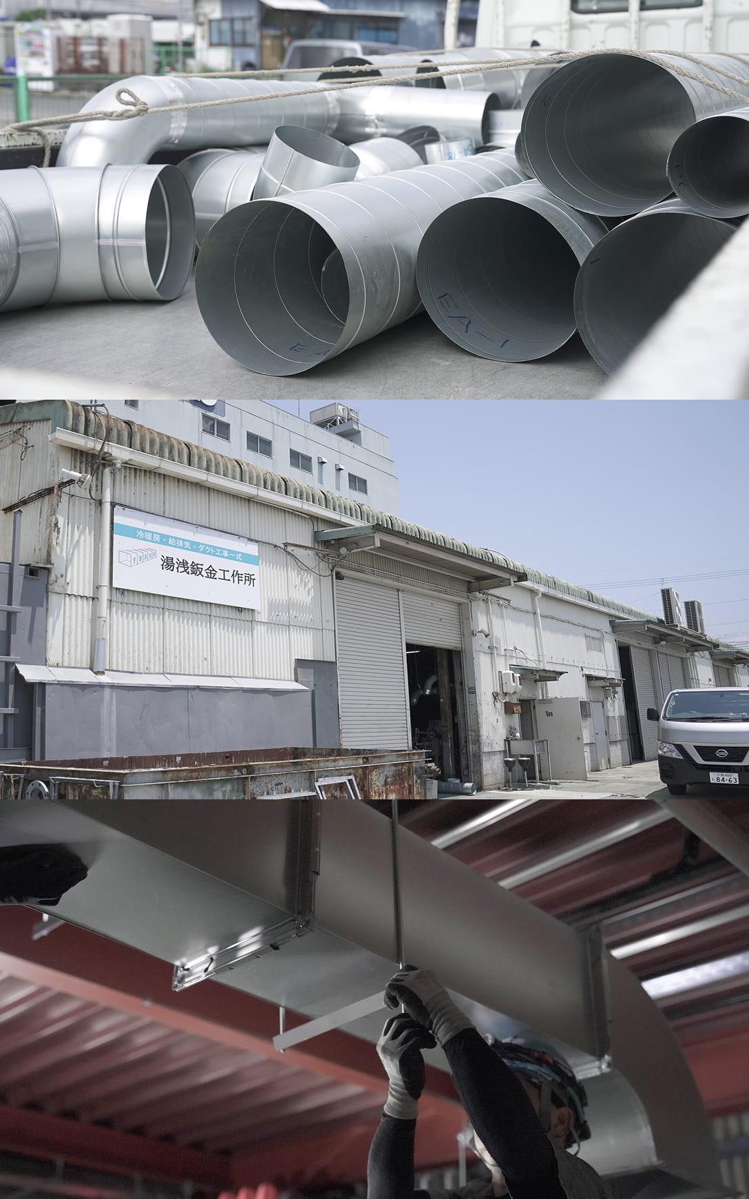 規模拡大に伴い、移転した摂津工場にてダクト製作、