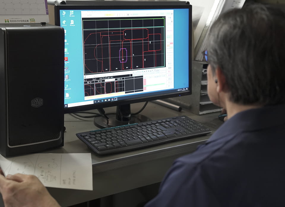 建物の設計図をもとに、専用のCADソフトを使ってダクトの形状や寸法を設計。