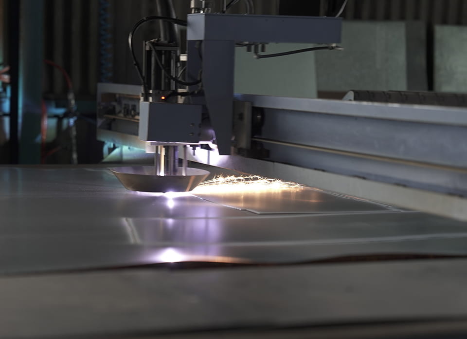 設計データをもとに、コイル状の鋼板をプラズマ切断機という機械で切り出します。高精度でスピーディーに、無駄なく部材を加工します。